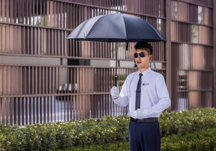 禮賓人員站姿、跨立、敬禮,每一個(gè)動(dòng)作都鏗鏘有力,禮貌問詢、停車指引、遮陽(yáng)服務(wù)、雨停服務(wù)等,細(xì)致周到的禮賓服務(wù)讓到來的每一位客戶都感受到賓至如歸的親切感。
